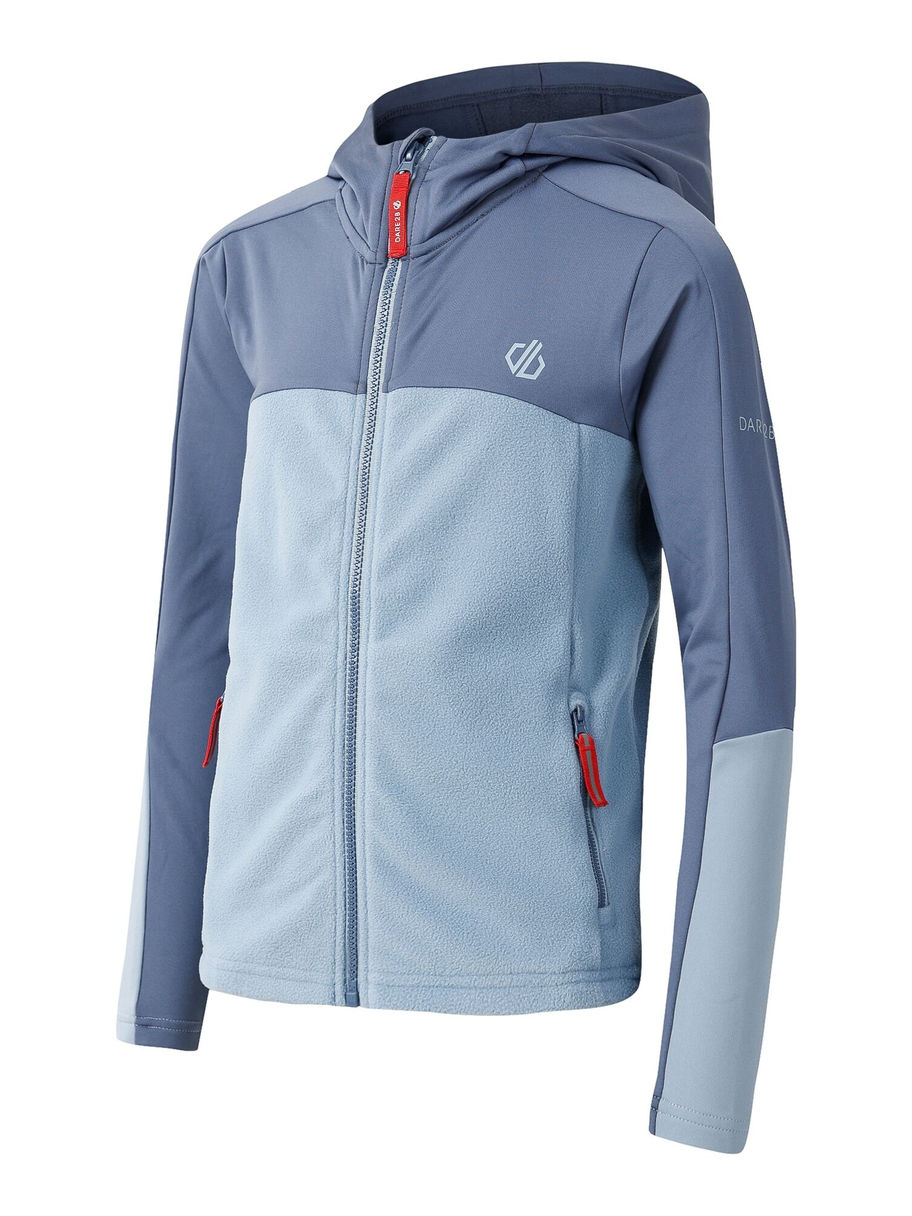 Der Thriving IV Core-Stretch-Midlayer für Kinder. Der Midlayer ist aus recyceltem Stretchgewebe mit gebürsteter Innenseite gefertigt und vereint Wärme und Komfort. Eine synthetische, chemiefreie, antibakterielle Beschichtung bekämpft unangenehme Gerüche, und reflektierende Logos und Reißverschluss-Schieber sorgen für gute Sichtbarkeit. Die feste Kapuze und der durchgehende Reißverschluss mit innenseitigem Reißverschlussschutz bieten zusätzliche Sicherheit. Und dank des UV-Schutzes (LSF 50+) sind junge Abenteurer mit diesem Midlayer auf alles vorbereitet.