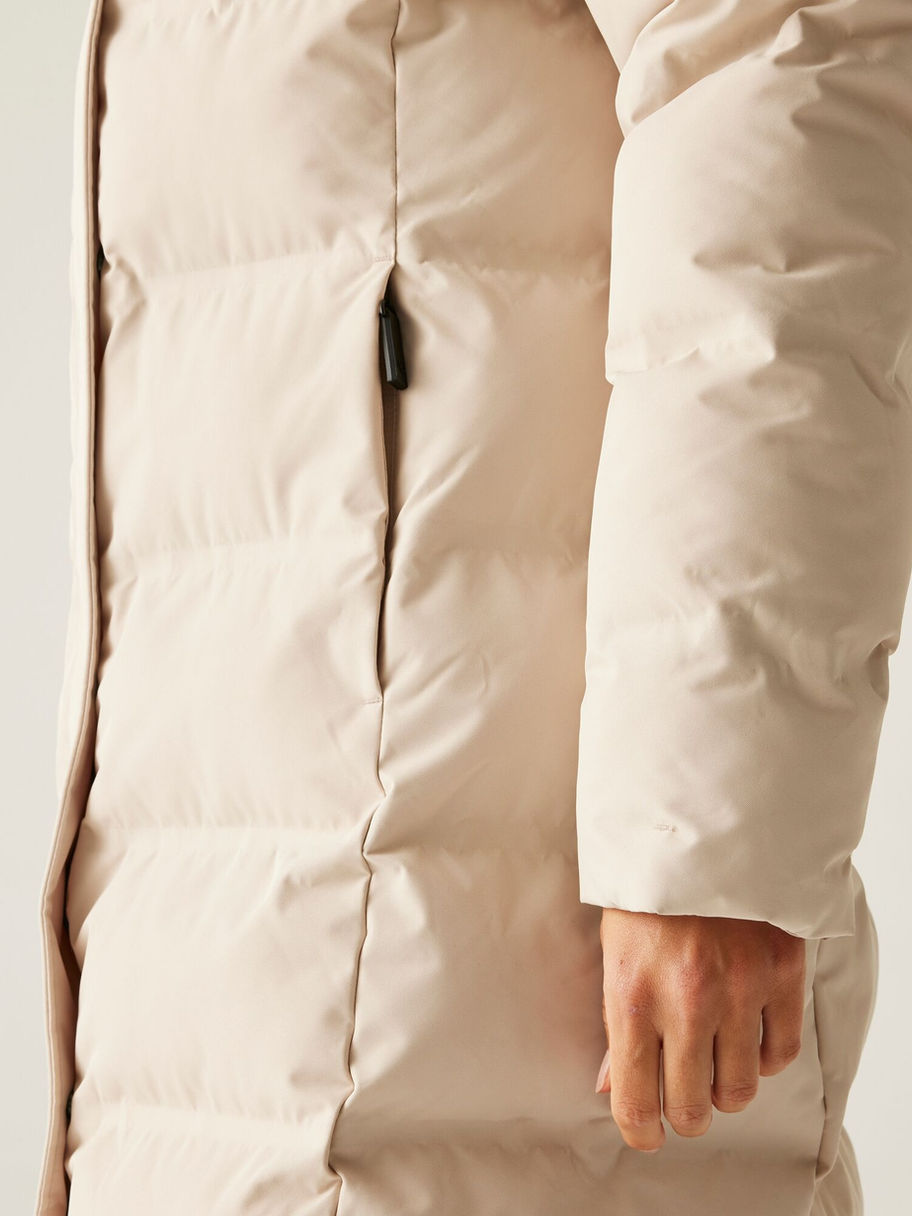 Die Damen Wander Jacke. Die verantwortungsvoll hergestellte, stylishe Jacke aus recyceltem, wasserfest und atmungsaktivem Gewebe macht beim Wetterschutz keine Kompromisse. Dank der besonders warmen ILoft-Ecofill-Wattierung hat die Kälte bei Ihren Outdoor-Abenteuern keine Chance, einzudringen. Die wattierte Jacke für Damen hat eine Kapuze und warme, innen liegende Ärmelbündchen für ein gemütliches Tragegefühl.